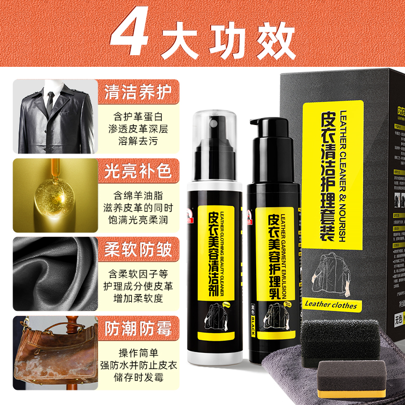 Leather cleaning and care set (black) (3 tools) Leather cleaning and care set (colorless) (3 tools) Leather nourishing milk (black) Leather cleaning milk (gloves)