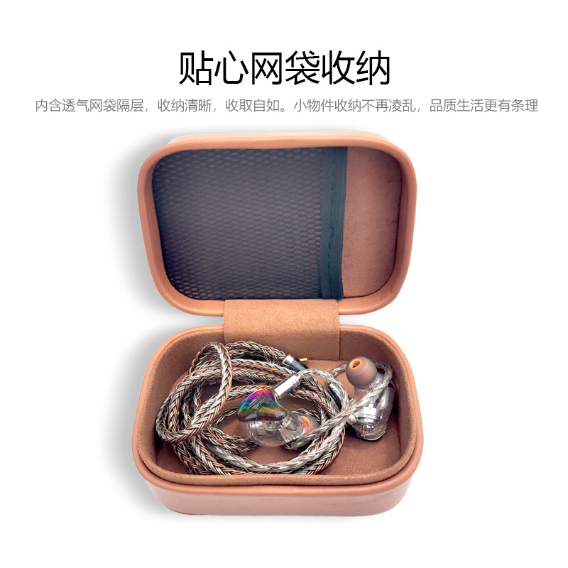 High - end hand - phone box portable pressure - resistant leather headphones upgrade line QDCVE8 headset capsule package