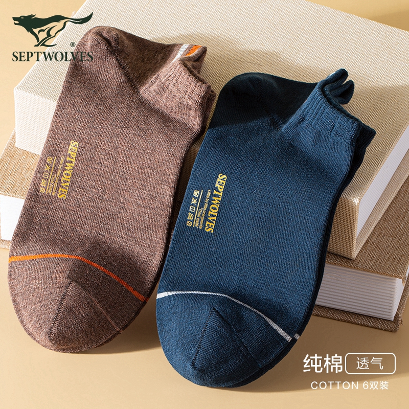 Septwolves socks socks men's cotton autumn 100% cotton deodorant sweat-absorbing cotton socks breathable invisible socks tide men's socks