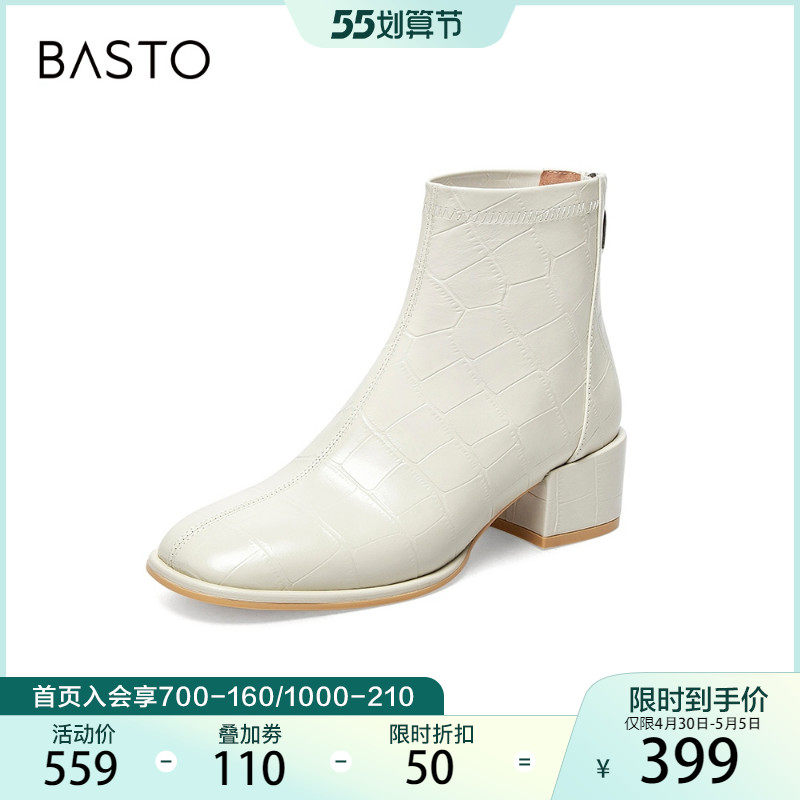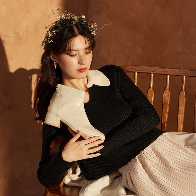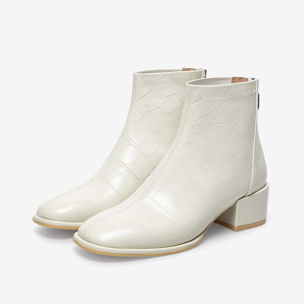 Thyme Winter's new genuine leather round head square heel with stone tattoos white fashion women's boots TGN42DZ1
