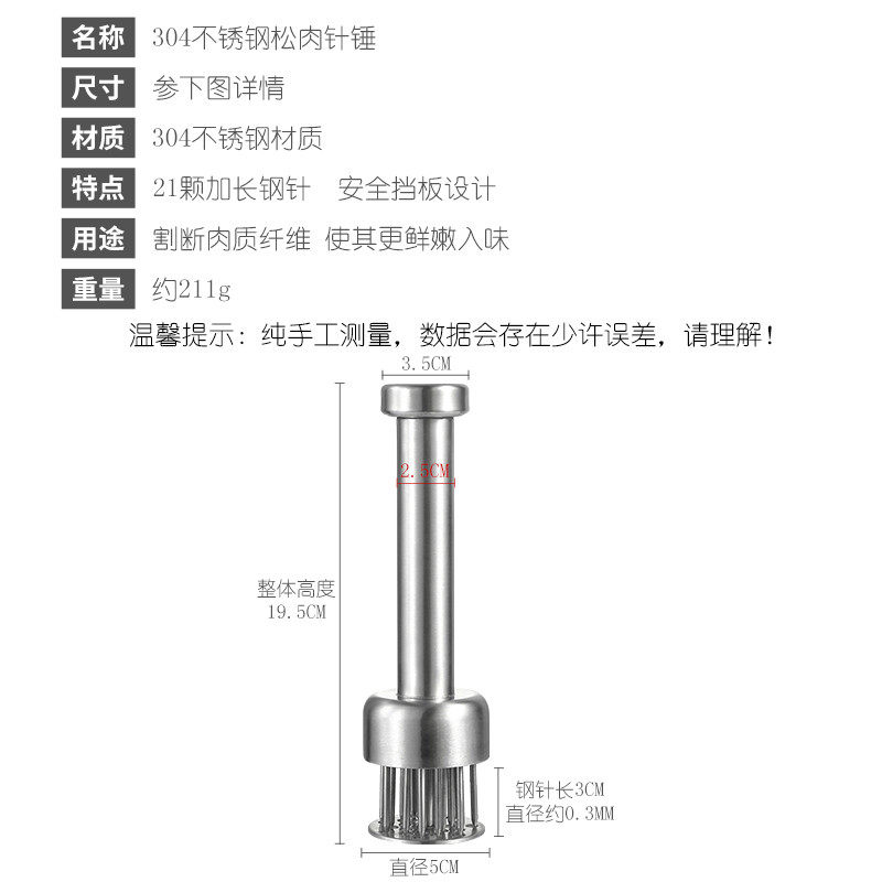 304 Stainless Steel Pine Meat Needle Bull Row Needle Inserts Button Meat Burning Meat Zagger Tender Meat Breaking Fascia God Instrumental Bull Pickle Hammer Tool