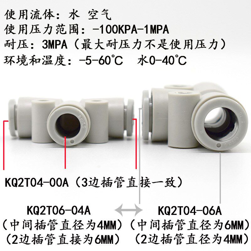 SMC Tube Tee Connector KQ2T04 KQ2T06 KQ2T08 KQ2T10 KQ2T12-00A Variable Diameter Model T