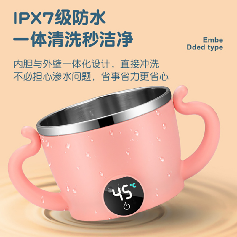 Rechargeable intelligent child thermostatic bowl 45 ° C heated baby anti-fall insulated stainless steel cutlery secondary food bowl