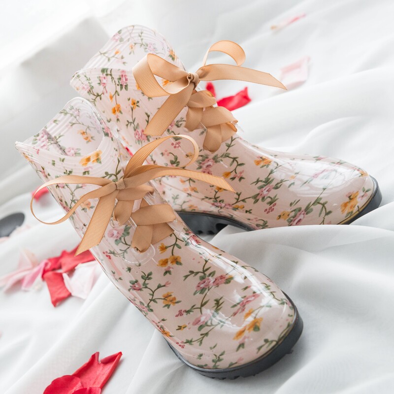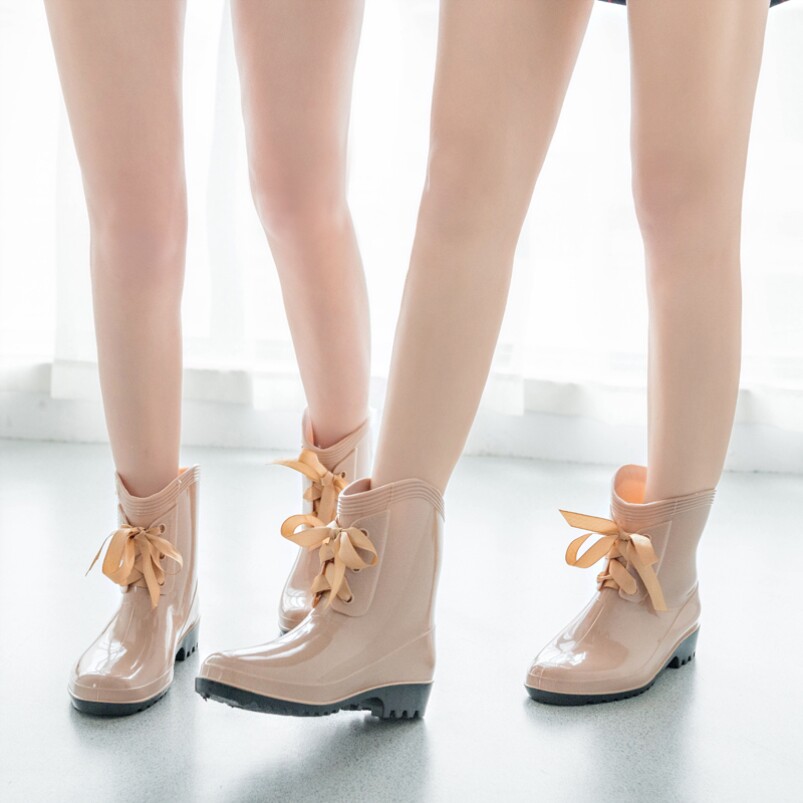 Rain boots women's summer fashion high tube new ladies rain boots medium tube flat heel Korean rain boots plus cotton waterproof non-slip