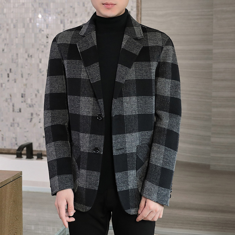 2022 business casual plaid small suit men's autumn and winter double-sided woolen coat short woolen woolen coat trend