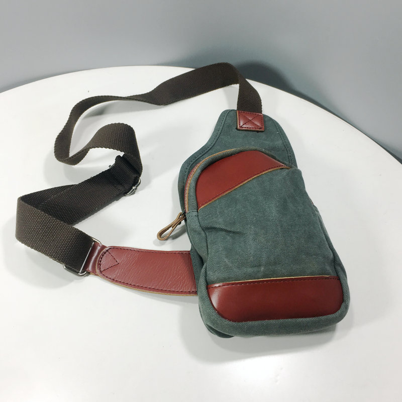 Foreign Trade Chest Bag Canvas Crazy Horse Leather Small Backpack Casual Shoulder Messenger Bag Retro Men and Women Chest Small Backpack Tide Brand