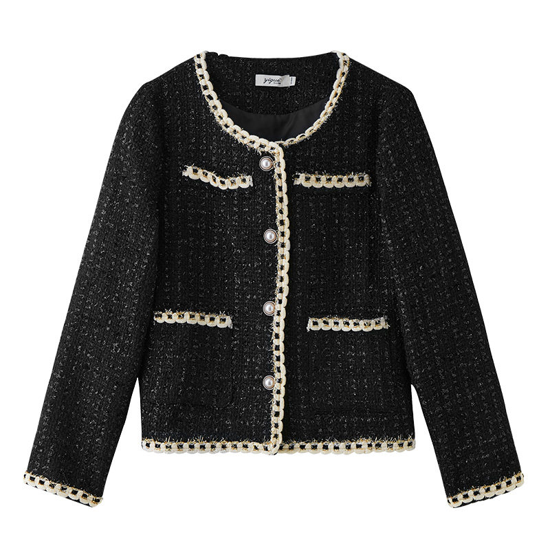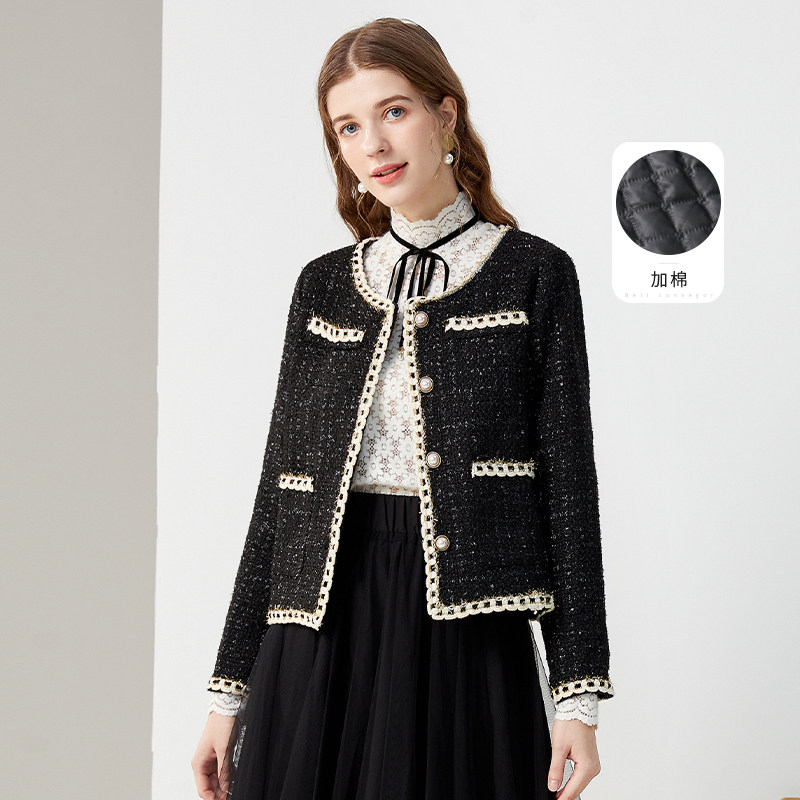 Yigu French-style short small fragrant wind jacket women's 2022 autumn new high-quality plus cotton niche black top