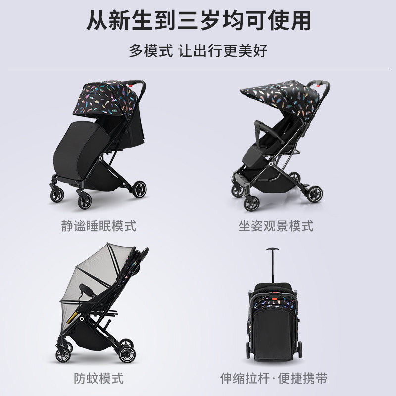 Baby cart one-click to get a BB car can lie light folding baby cart can board the pull rod shade