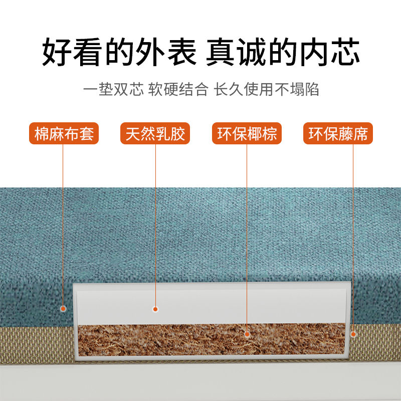 3 cm thick whole coconut palm 5 cm thick whole coconut palm 3 cm thick = 2 cm coconut palm + 1 cm latex 4 cm thick = 3 cm coconut palm + 1 cm latex 5 cm thick = 4 cm coconut palm + 1 cm latex 4 cm thick = 2 cm coconut brown + 2 cm latex 5 cm thick = 3 cm coconut brown + 2 cm latex 8 cm thick = 5 cm coconut brown + 3 cm latex high-end customization size thickness consulting customer service