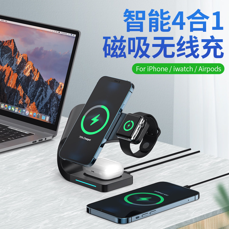 Apply Apple 12 Private MagSafe Magnetic Attraction Quick Charge iPhone13ProMax Wireless Charger Four All-in-one Phone Multifunction Bracket iwatch6 Headphone Air
