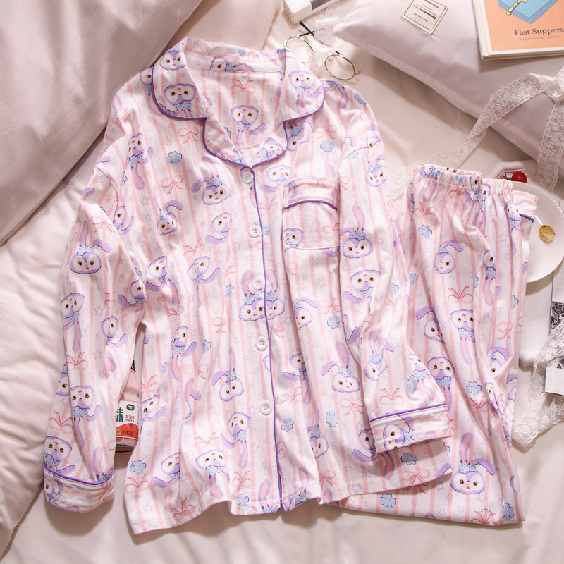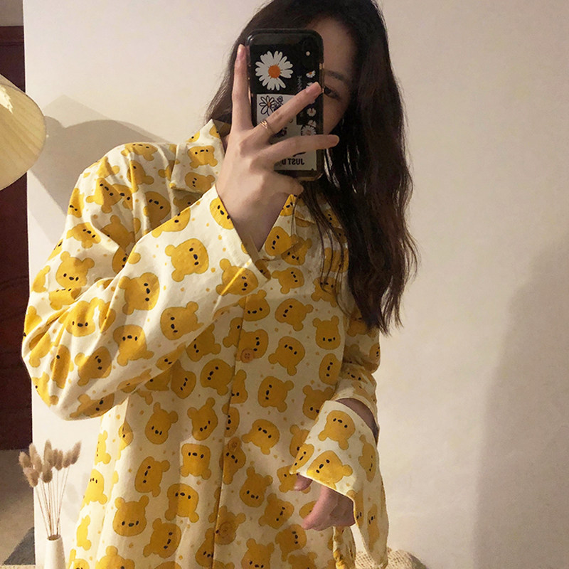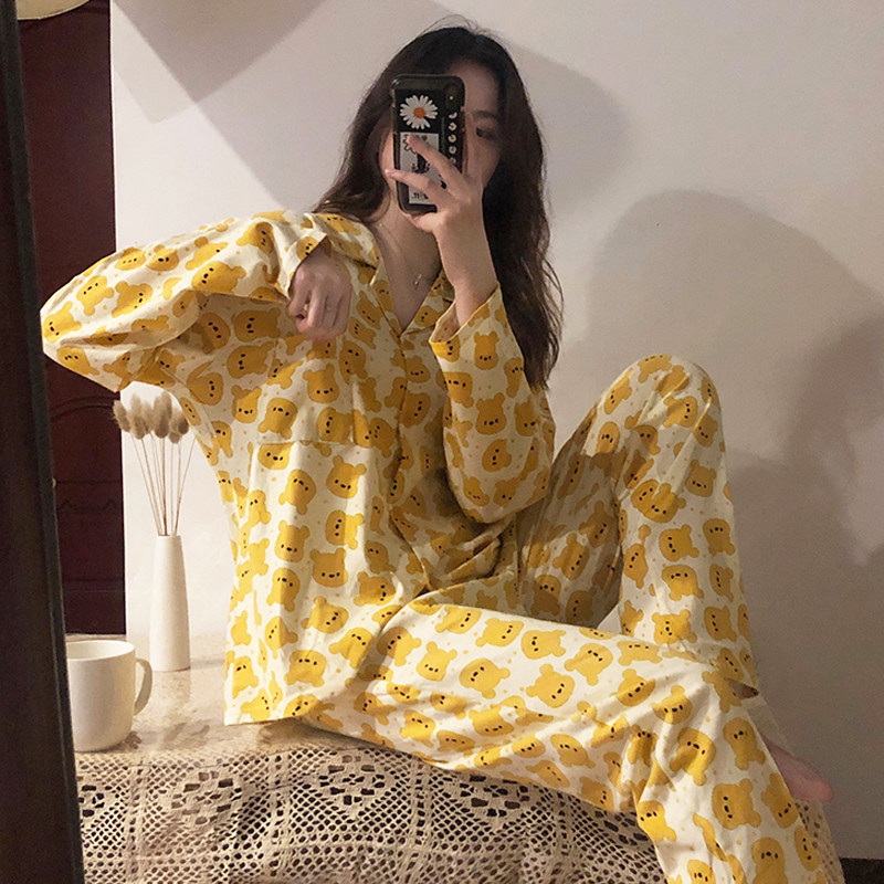 Japanese ins~ cute bear pajamas women's spring and autumn cotton long-sleeved can be worn outside the home ju clothing suit