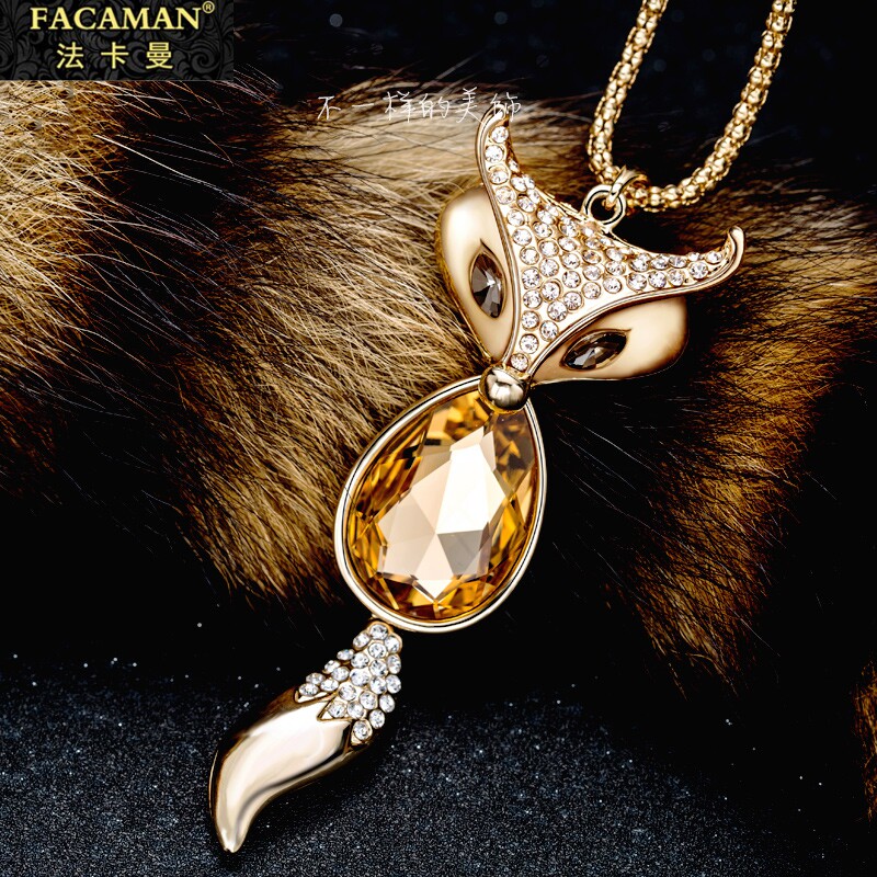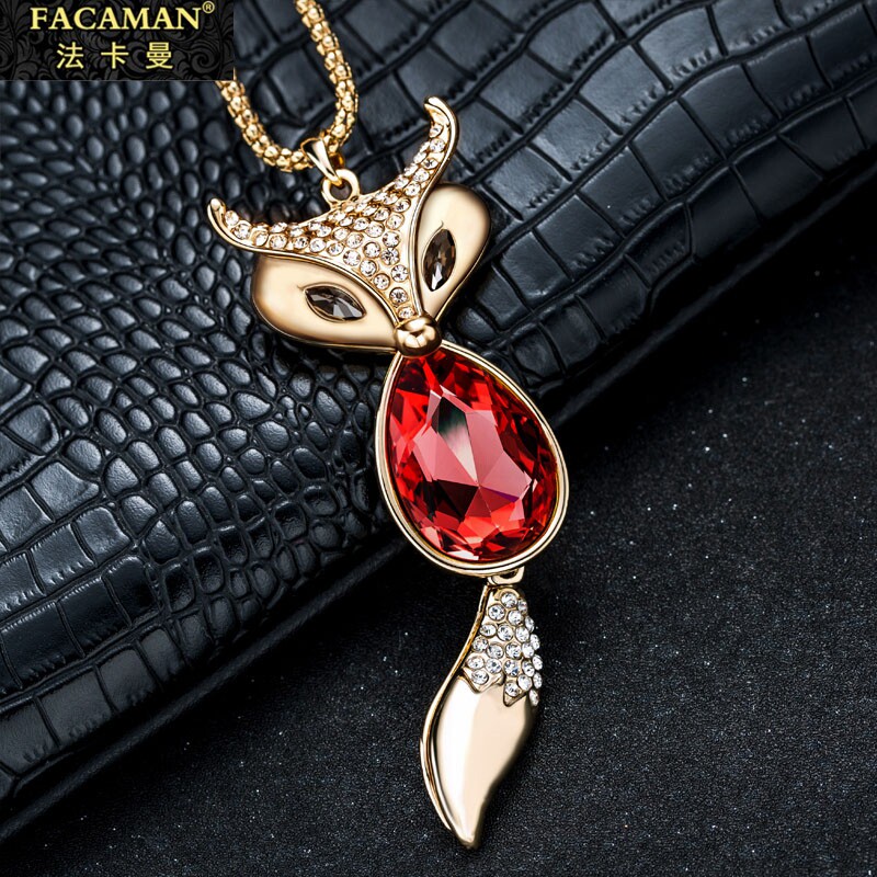 Fakaman Fox Fur Coat Necklace 2021 New Long Version Brief Online Red Conn Pendant Necklace Woman LITTLE CROWDART