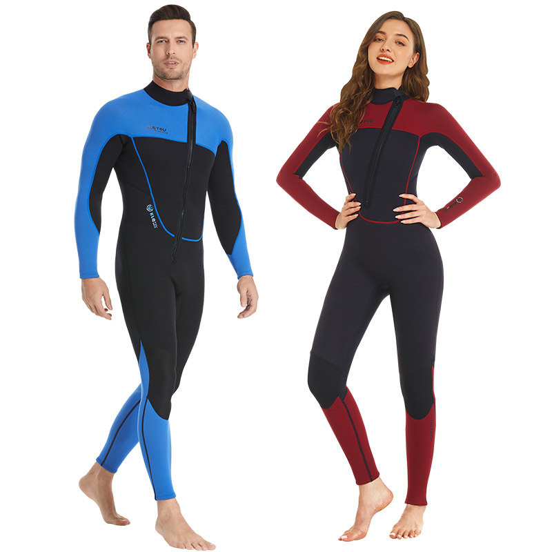 Diving suit front zipper warm swimsuit 3MM long-sleeved cold-proof jellyfish men and women winter thickened one-piece