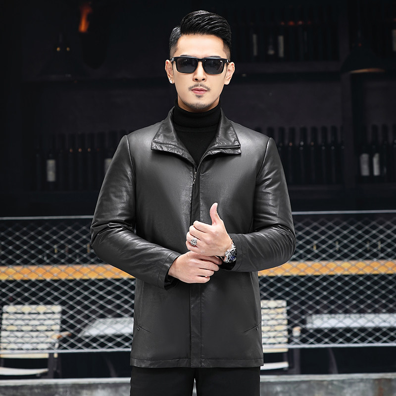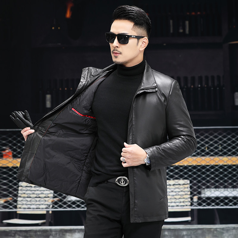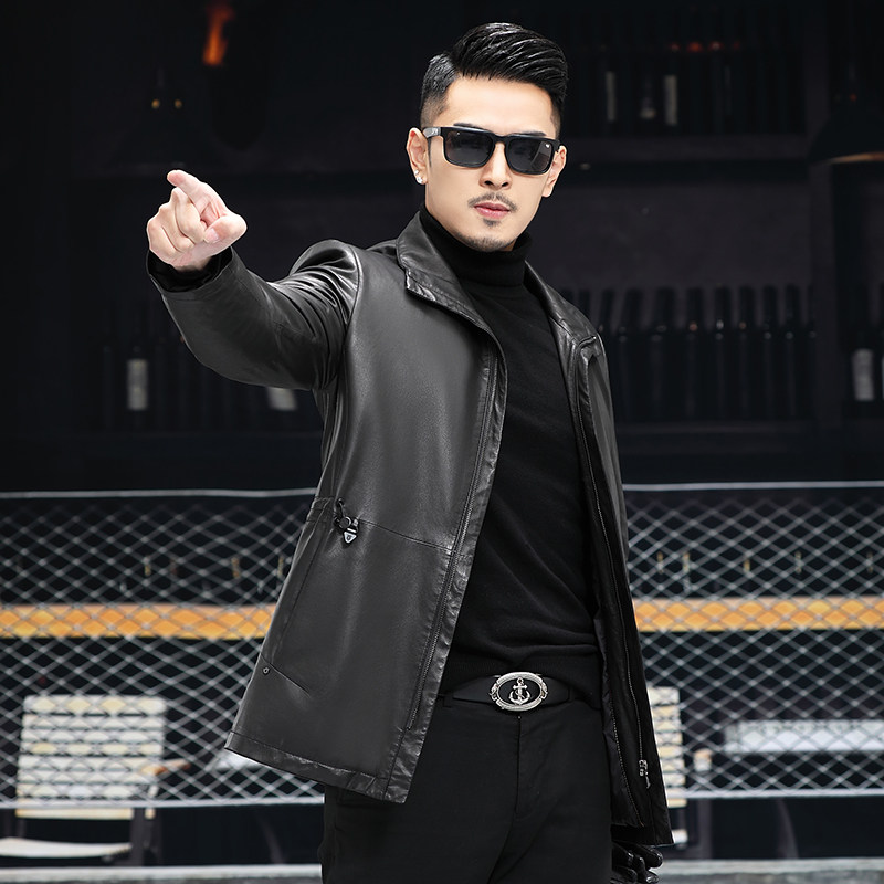 New genuine leather fur coat men's medium long version of the wind coat turned over mulberry silk liner Sheep leather jacket jacket Leisure sashimi
