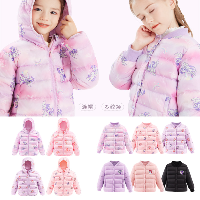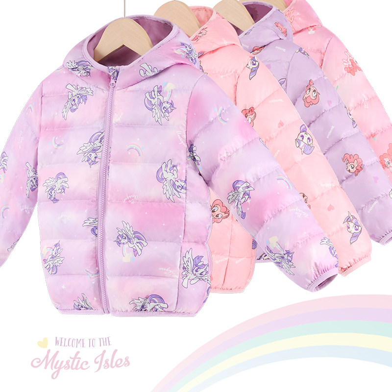 Pony rainbow pony girls down jacket children's light jacket autumn and winter big boy baby wear hooded warm white duck down