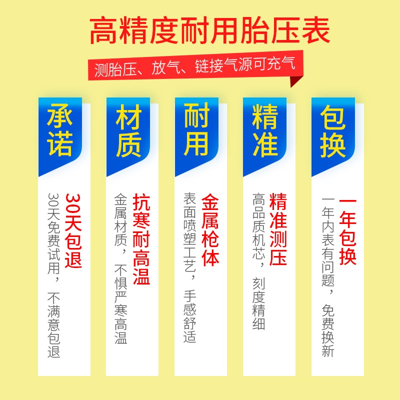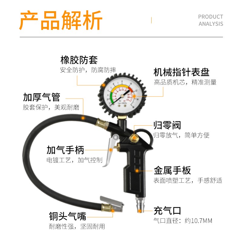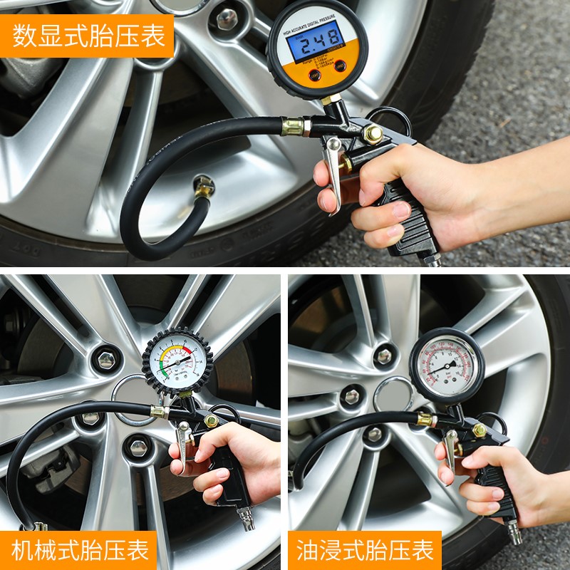 A E D High-precision tire pressure gauge (oil-immersed model) High-quality copper head air pipe☆ One-year warranty* F High-precision tire pressure gauge (pointer model) Visual tire pressure warning cap☆ One-year warranty High