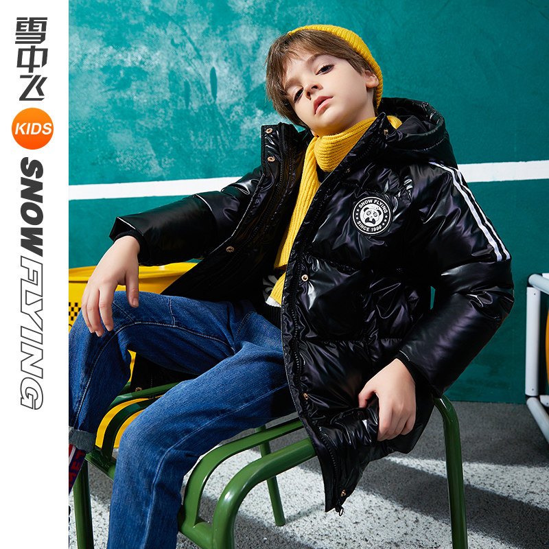 Snowy flying children's clothes children's down clothes in the middle of the long version of the boy's great boy foreign pie bright side white duck suede children down clothes