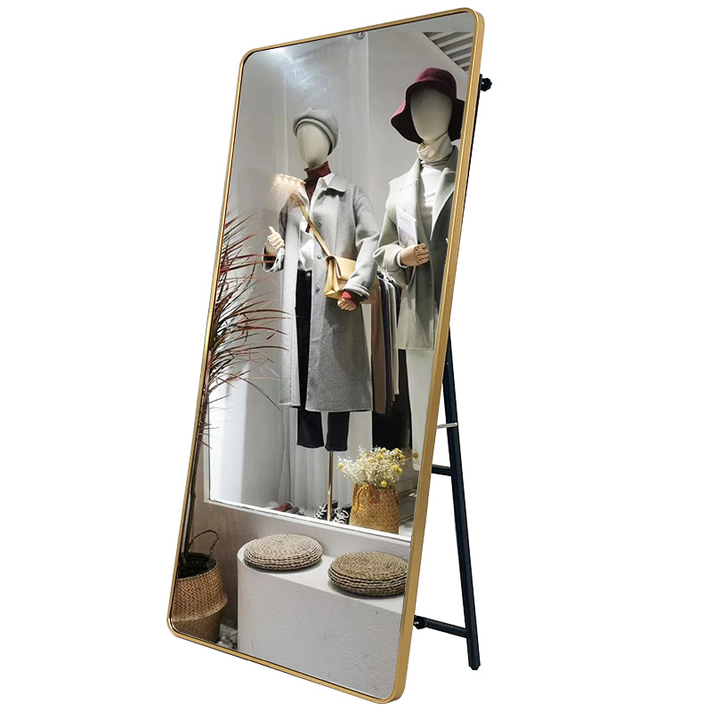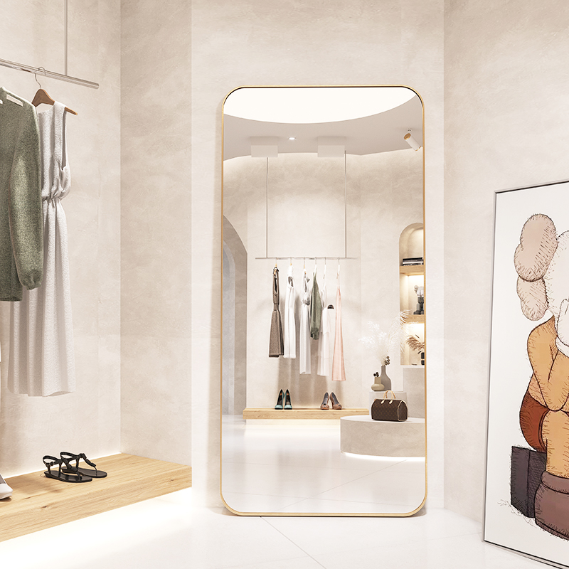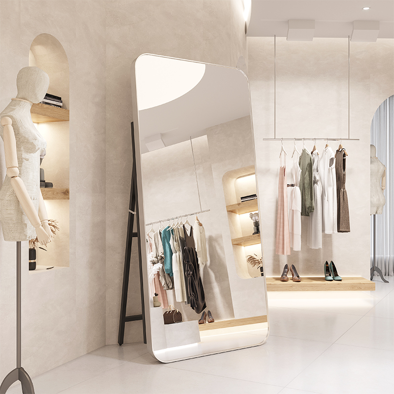 Rounded corner clothing store fitting mirrors slim beauty floor-to-ceiling mirrors ins full body dressing mirrors with wheels to move the dance mirrors