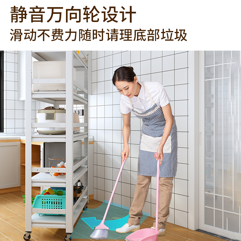 Movable kitchen shelf floor multi-layer microwave oven storage layer shelf household balcony white storage cabinet