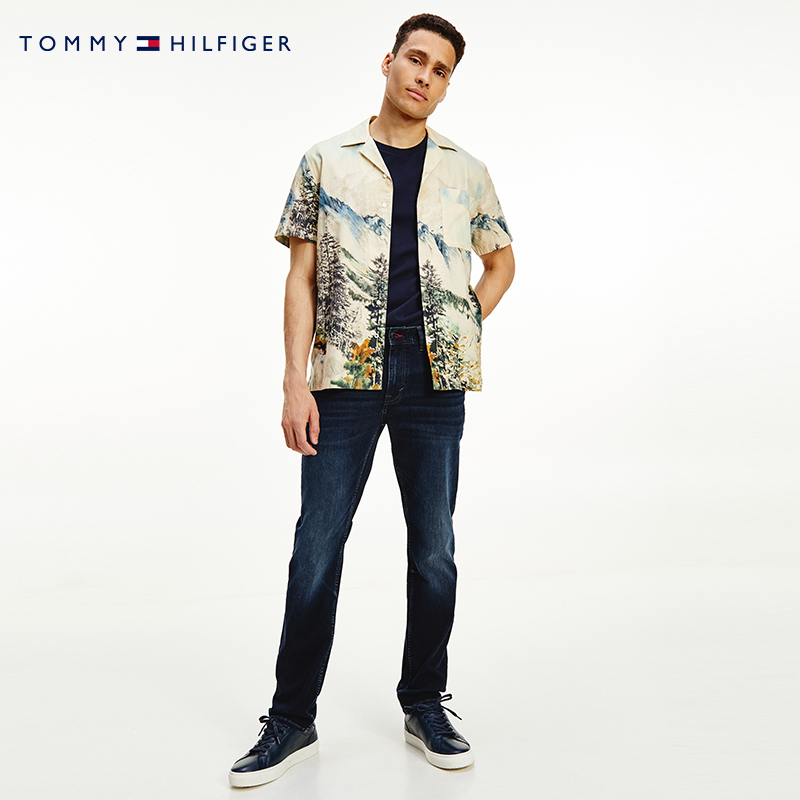 Tommy men's clothing minimalist LOGO patch grinding white micro-slingshot straight cylinder washed with jeans MW0MW19928