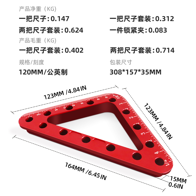 45 45 90 degrees 120MM aluminium alloy woodworking jointed plate positioning ruler mounting fixed clamp woodworking ruler inflection ruler