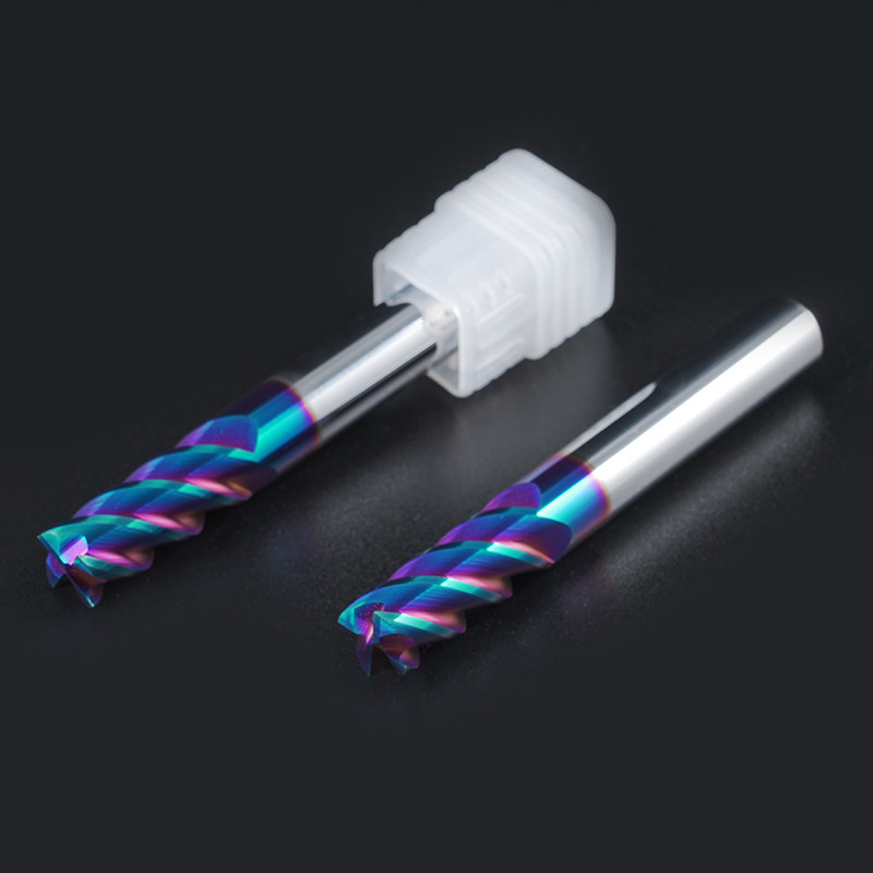 65-degree tungsten steel alloy milling cutter 4 blades nano blue coating plus hard plus long straight shank flat knife stainless steel CNC vertical milling cutter