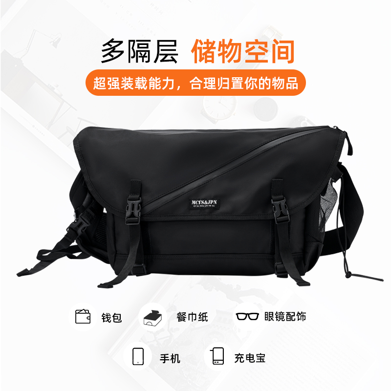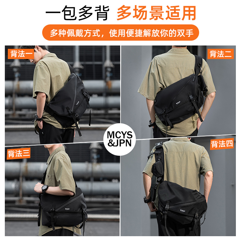 Single Shoulder Bag Men's Bag Men's Slanted Satchel Wave Tooling Function Day Tying Book Bag Computer Bag Satchel Big Capacity