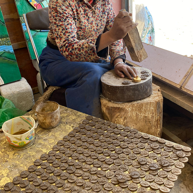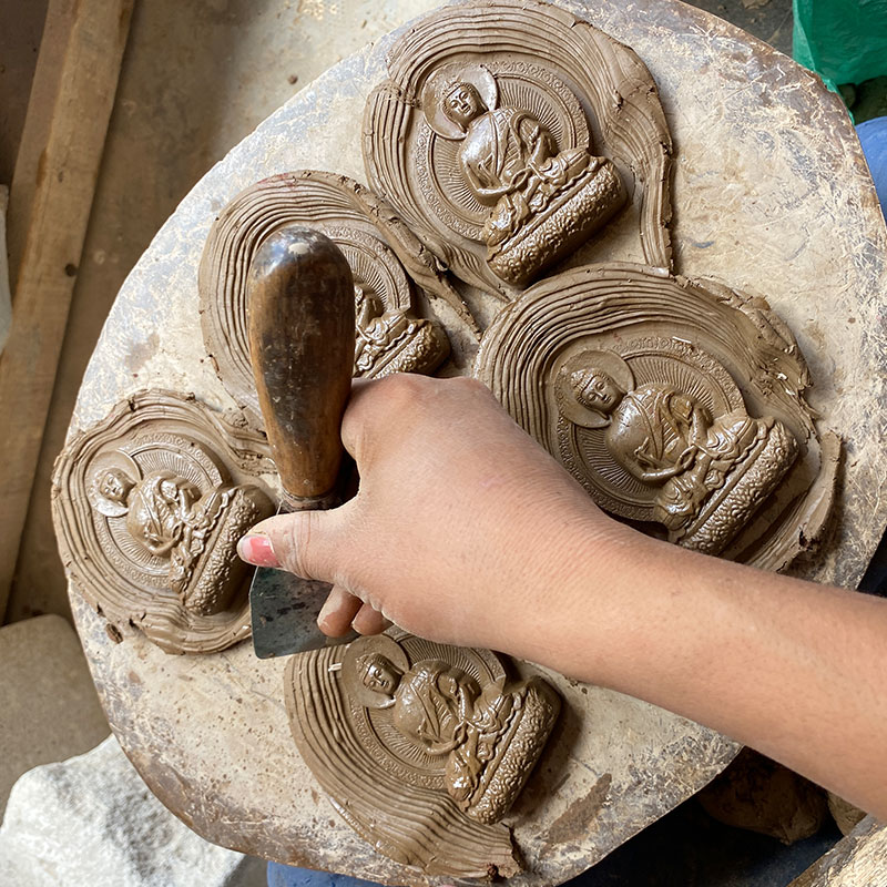 (Generation of Buddha statues) Trumpet Tsongkhapa Master rubs Buddha statues Traditional statue masters in Lhasa, Tibet