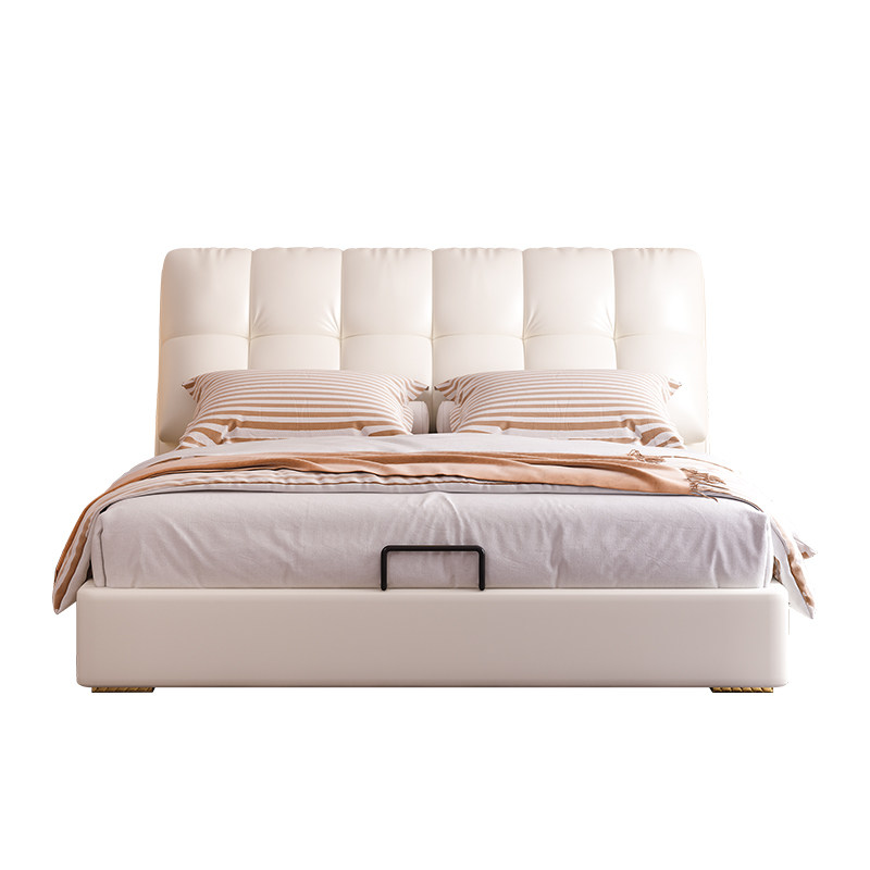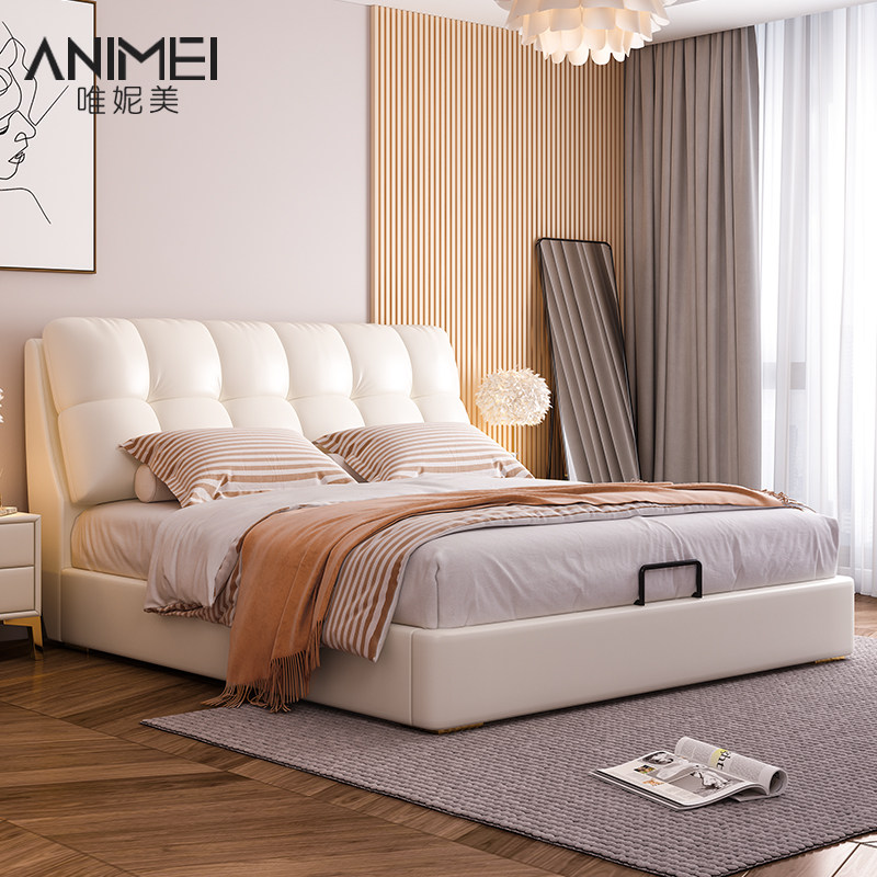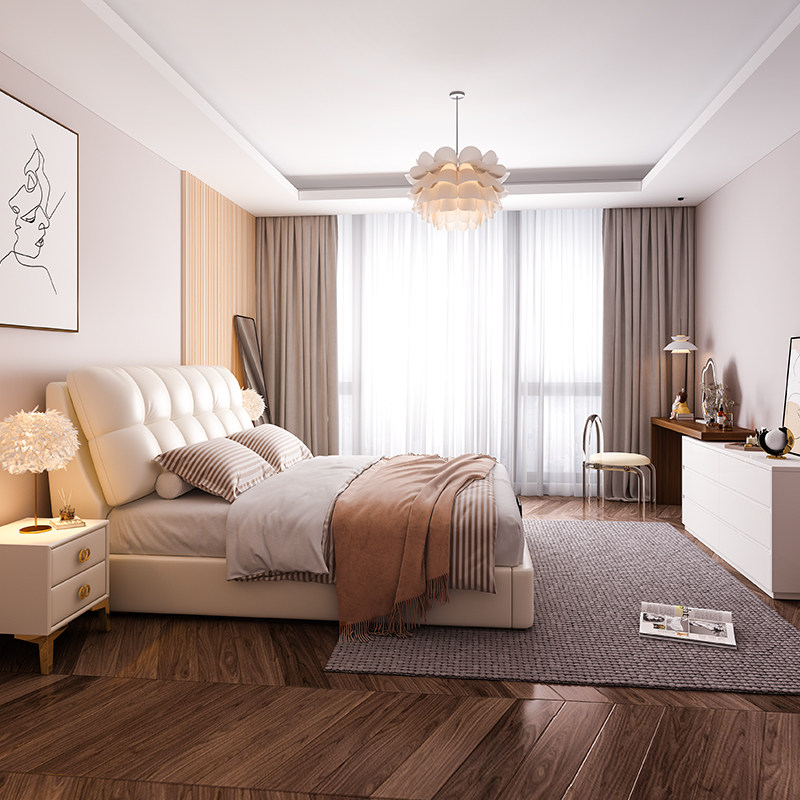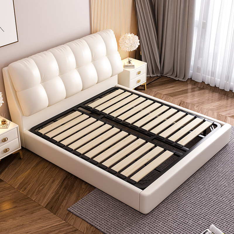 Modern minimalist leather bed double bed wedding bed master bedroom 2022 new soft package light luxury solid wood row skeleton king bed