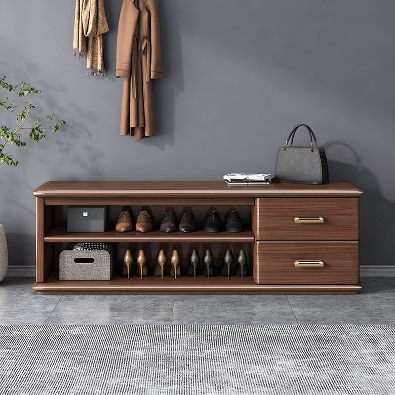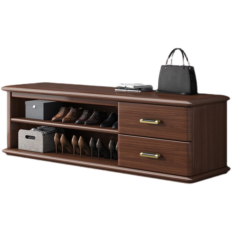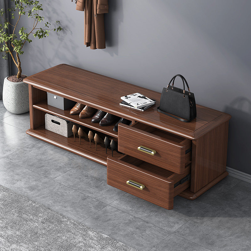 New Chinese-style solid wood shoe stool modern light luxury large and small apartment walnut can sit-type shoe stool shoe rack furniture