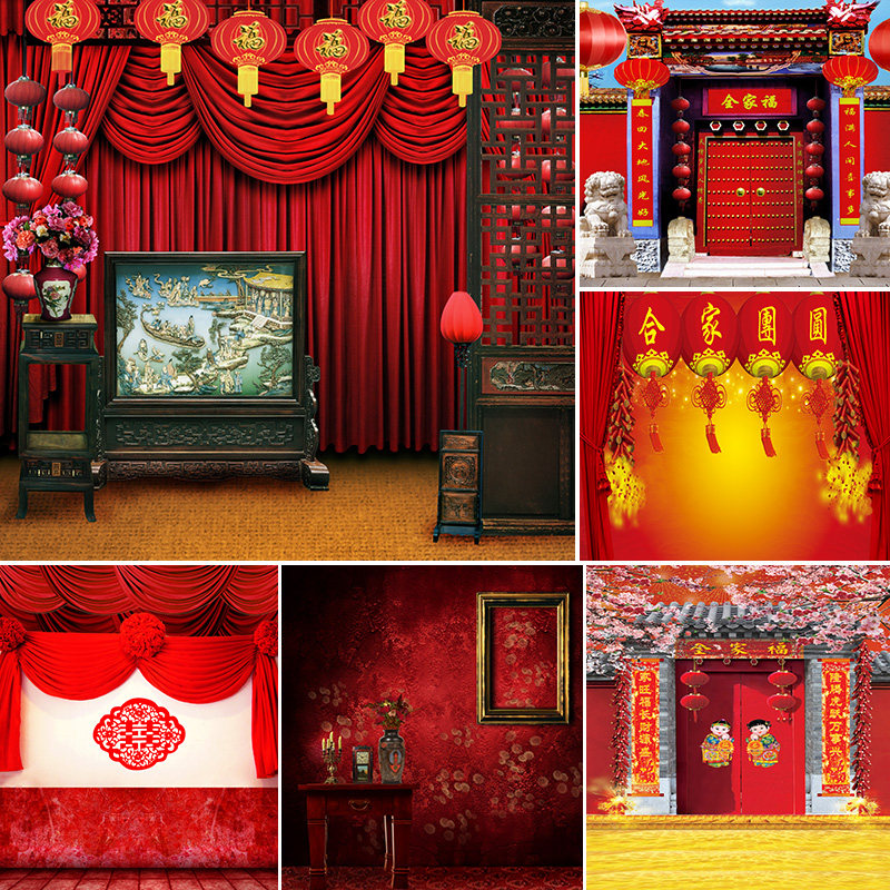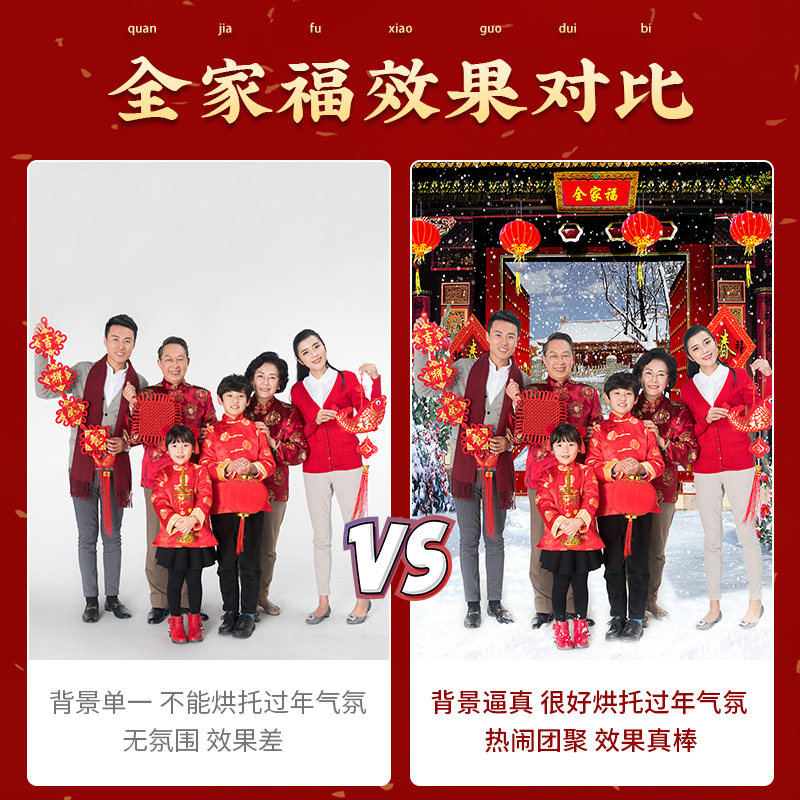 Family portrait New Year's Day Spring Festival live broadcast background cloth 3D three-dimensional live broadcast room decoration Internet celebrity anchor photo background wall 2021 new New Year festive Chinese style New Year greetings New Year family photo