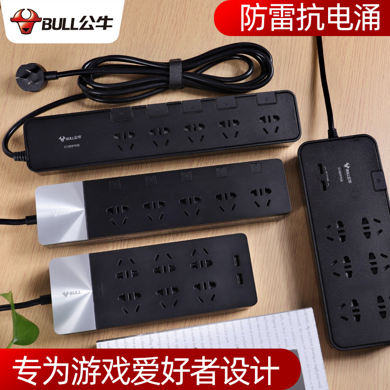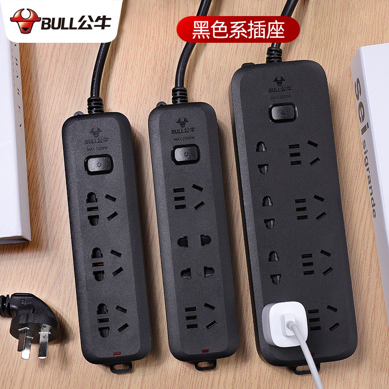 Bull socket black power cord multi-socket extension cord with switch national standard socket row desktop row socket with line plug board