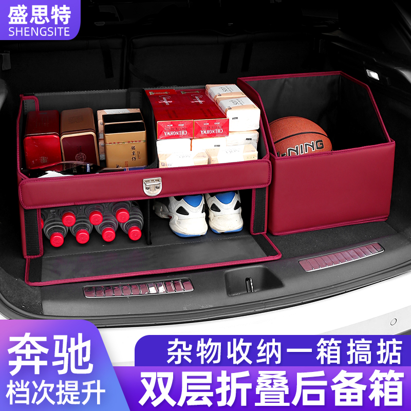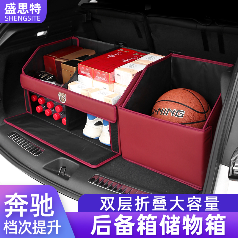 Trunk storage compartment (upgraded version Foldable-double-Benz scale-medium number) red 1 loaded Mercedes Benz storage barrel (bin) Mocarbrown 1 Loaded Trunk Compartment (uplift version can be folded)