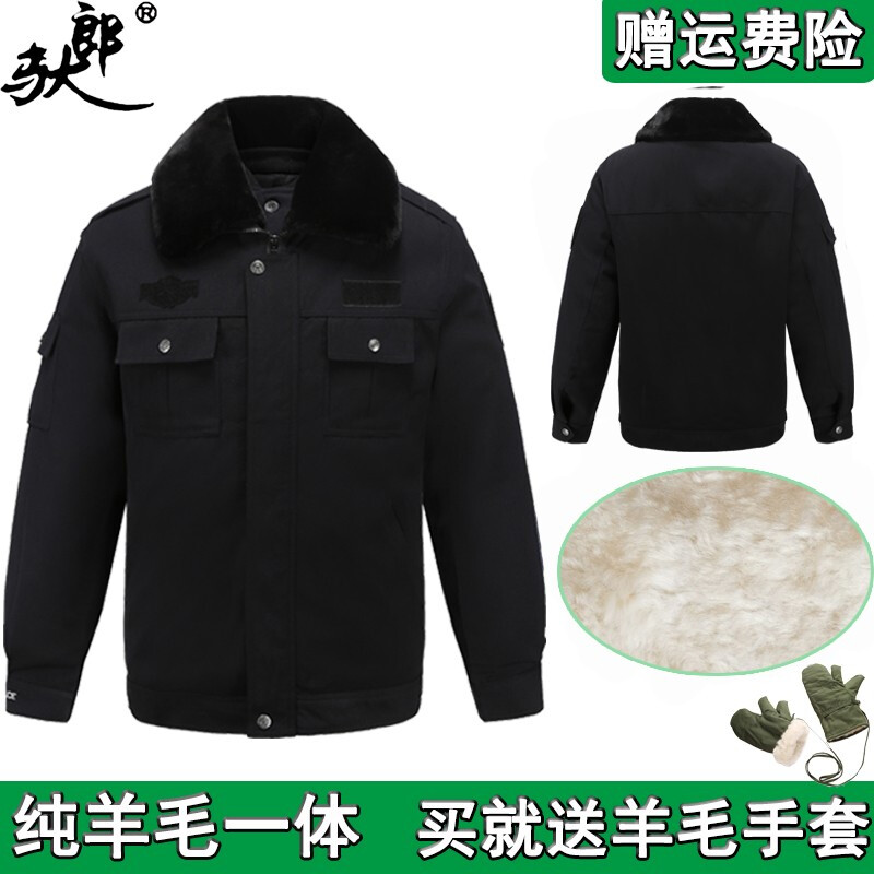 Sheep Leather Army Cotton Great Clothes Men And Women Winter Thickened Leather Hair Integrated Black Multifunction Duty Anti Cold Security Wool Jacket