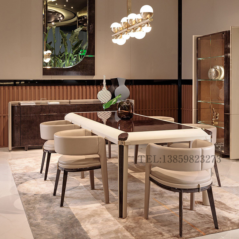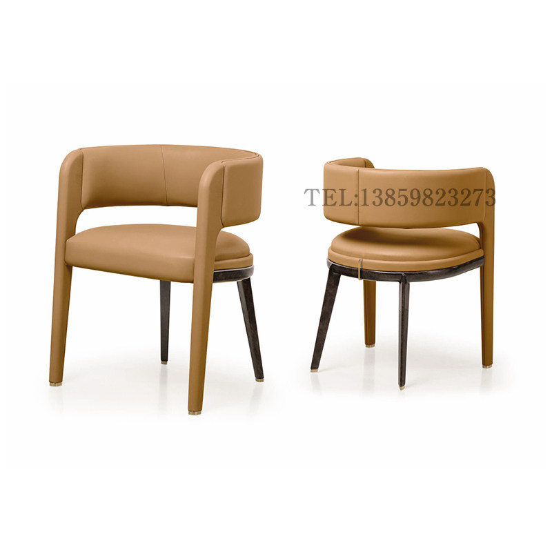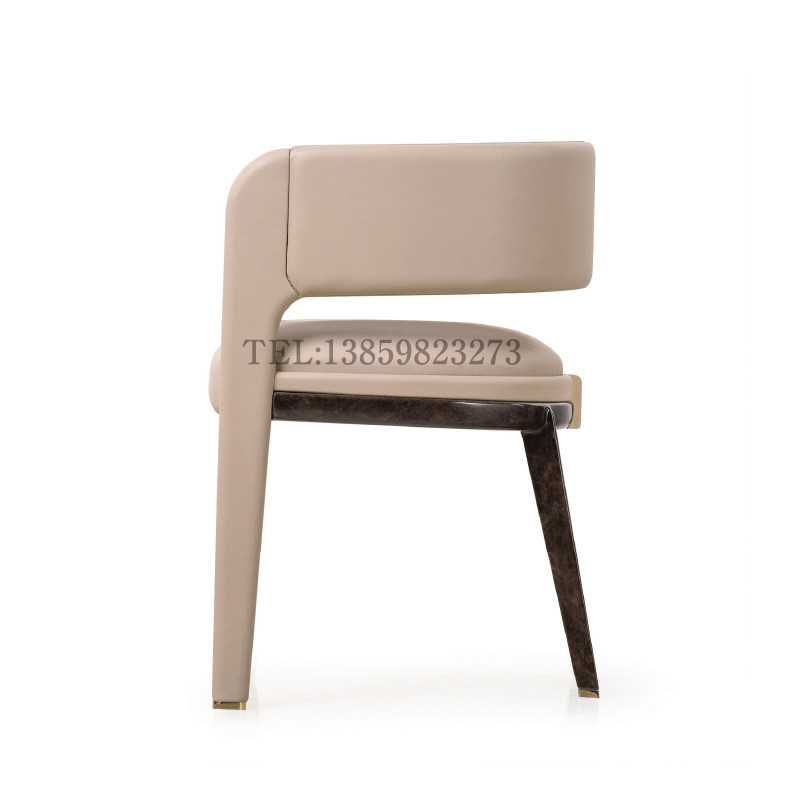 Post-modern light luxury leather art leisure chair model room office reception negotiation chair hotel restaurant solid wood dining chair