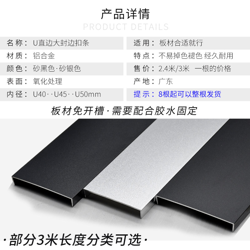 U-shaped aluminum alloy door panel edge strip u40u45u50 wood panel closing edge plywood edge decorative metal buckle strip