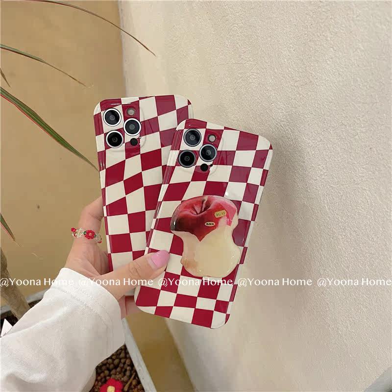 Yoona Home retro dark red chess lattice Apple applies iphone12pro max Apple 11 phone protection shell
