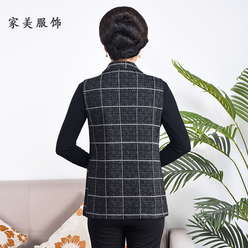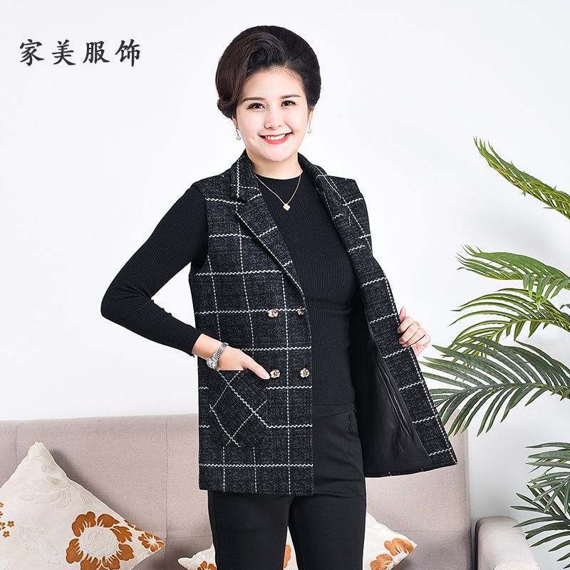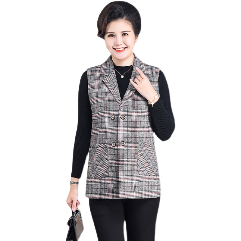 Medium-aged thin waistcoat female spring autumn new large size checkered mawl jacket with long version of Mama external wearing canon vest