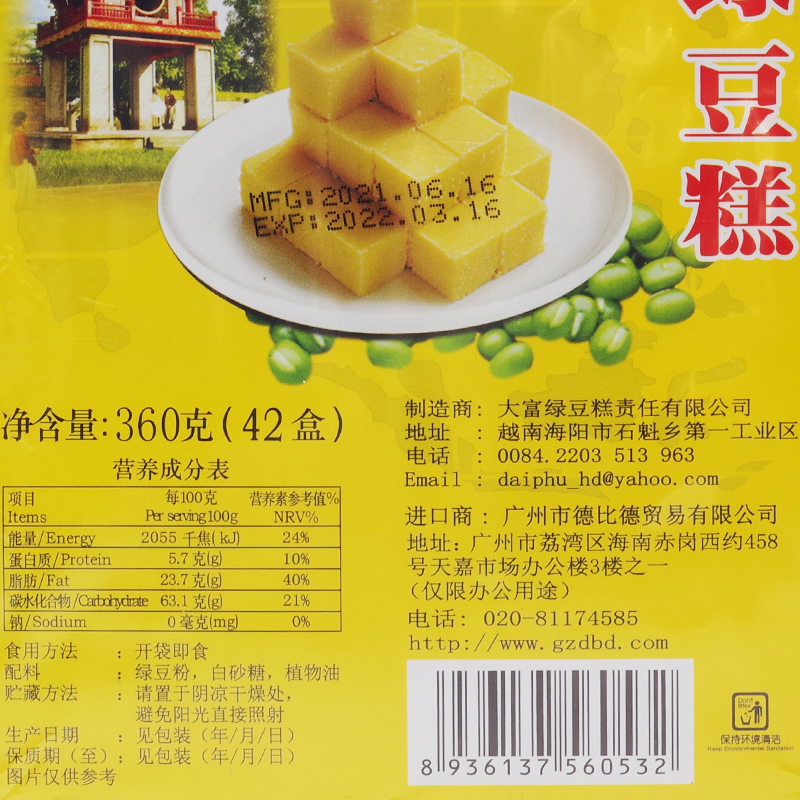 Original taste green bean cake 360 gr (42 small case) * 1 bag original taste 200g (16 pieces) * 1 box of smeared tea taste 200g (16 pieces) * 1 box original taste 100g (8 pieces) * 1 box