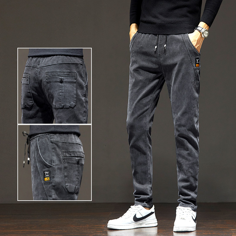 2021 new jeans men's fall/winter style plus plus thickened elasticated waist casual long pants winter