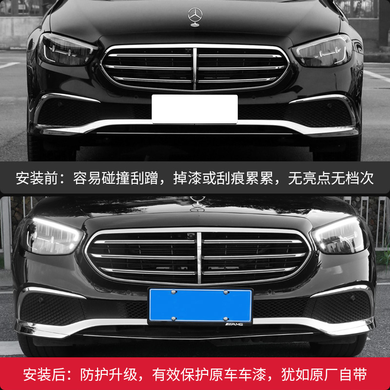 21-22 Benz E-Class-standout exclusive (front-bar corner guard decoration strip 2 pieces of clothing) 16-20 Benz E-grade-standout special (front bar trim strip for 3 pieces) ABS bright silver