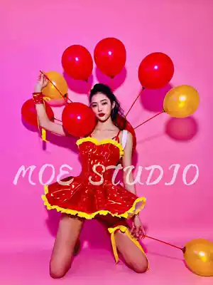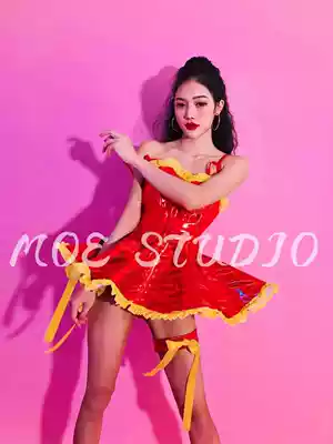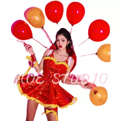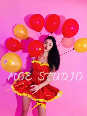MOE bar balloon party sexy gogo bright red illusion laser swing dress DS lead dance suit