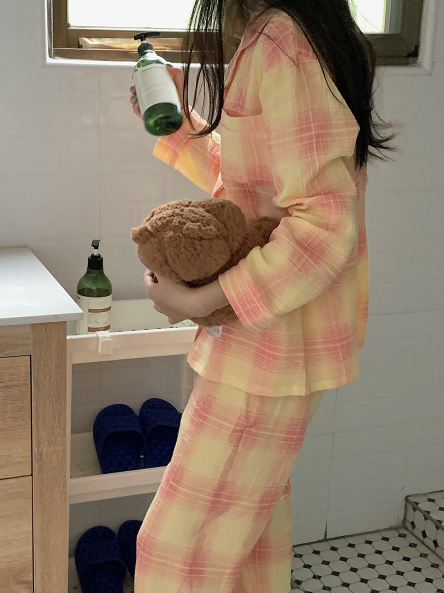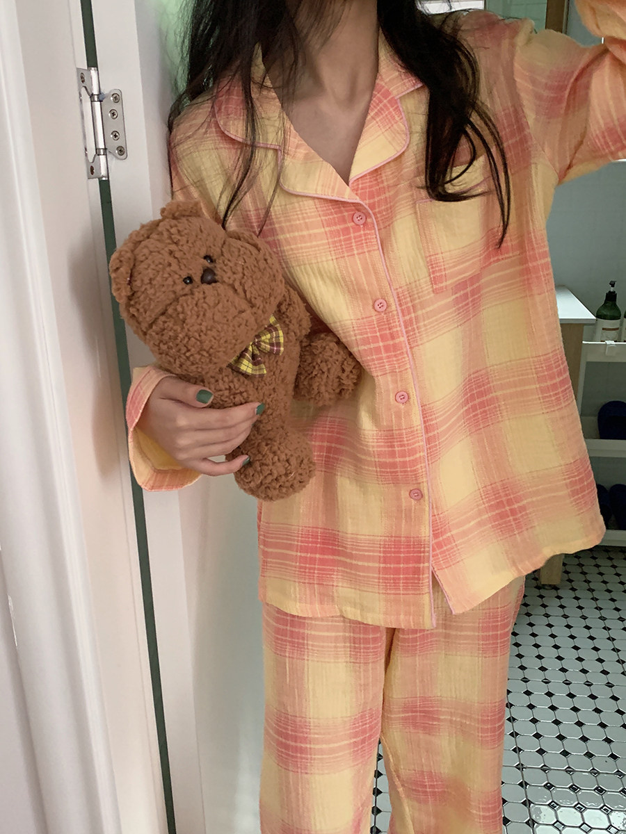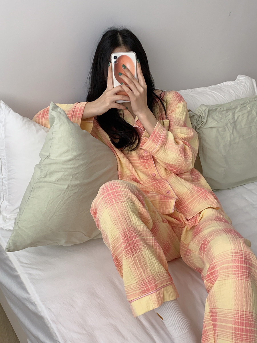 Niche simple beauty ~ CHAO real wear spring and autumn check pajamas women comfortable long sleeve loose home suit