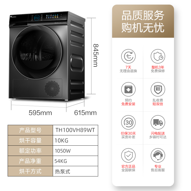 (Heat Pump) Little Swan Dryer Heat Pump Type Household Fully Automatic 10kg Drum TH100VH89