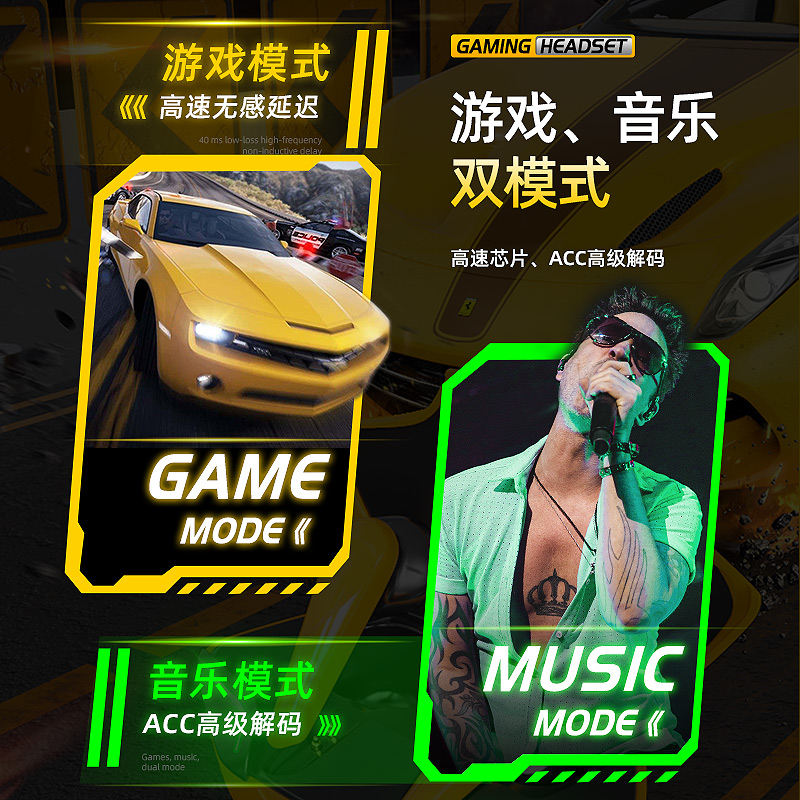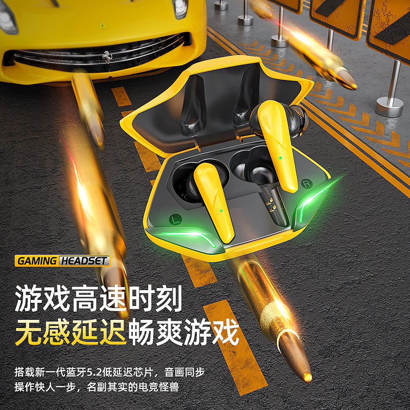 (Favorite add to shopping cart) Two-year warranty ★Extremely fast delivery Ultimate version (racing yellow ★Bluetooth 5 2 game chip ★Senseless ultra-low latency ★360D stereo sound effect ★Silicon microphone HD call