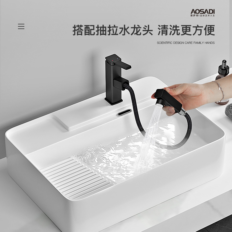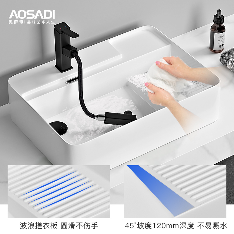 Osadi Stand on the basin drainage household wash basin ceramic washing basin rubber plate balcony washing tank 9055