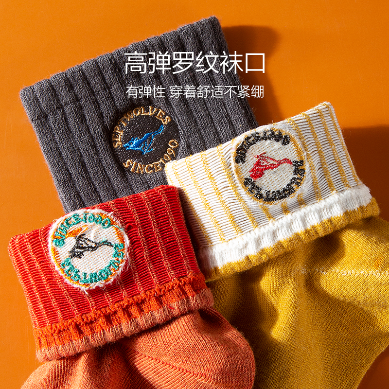 Seven Wolves Socks Men's Fall Pure Cotton Midbarrel Socks Men's Spring And Autumn full cotton Deodorant Sweat and breathable Sport Long Sox