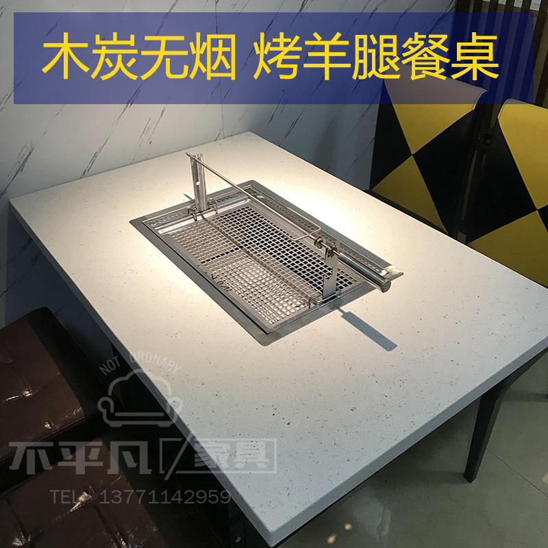 Smoke-free charcoal fire roast lamb table Commercial set to make stainless steel wood carbon grill table round marble hotpot table and chairs