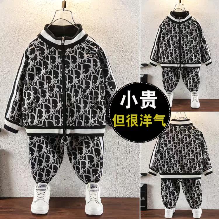 Boys sweater suit 2022 autumn children's Western style sports children's clothing fried street autumn handsome and fashionable two-piece tide