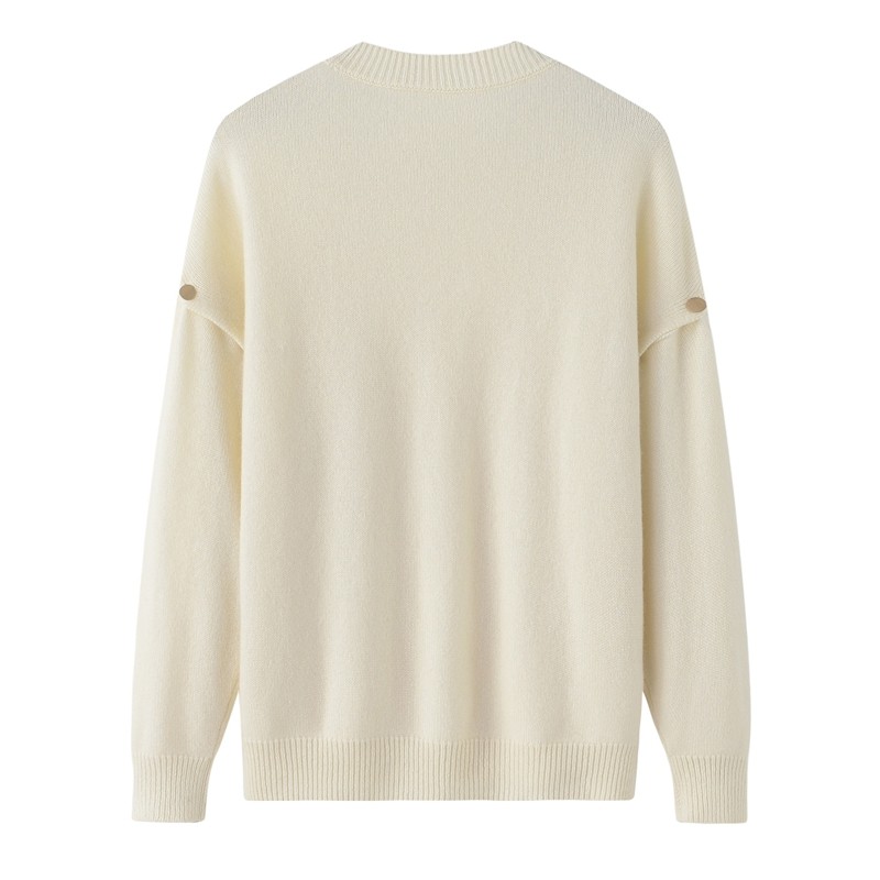 2021 Round Collar Cashmere Sweatshirt Lady Pure Kashmir Wool Cardiovert Loose Warm Pure Color Long Sleeve Variable Cashmere Sweater
